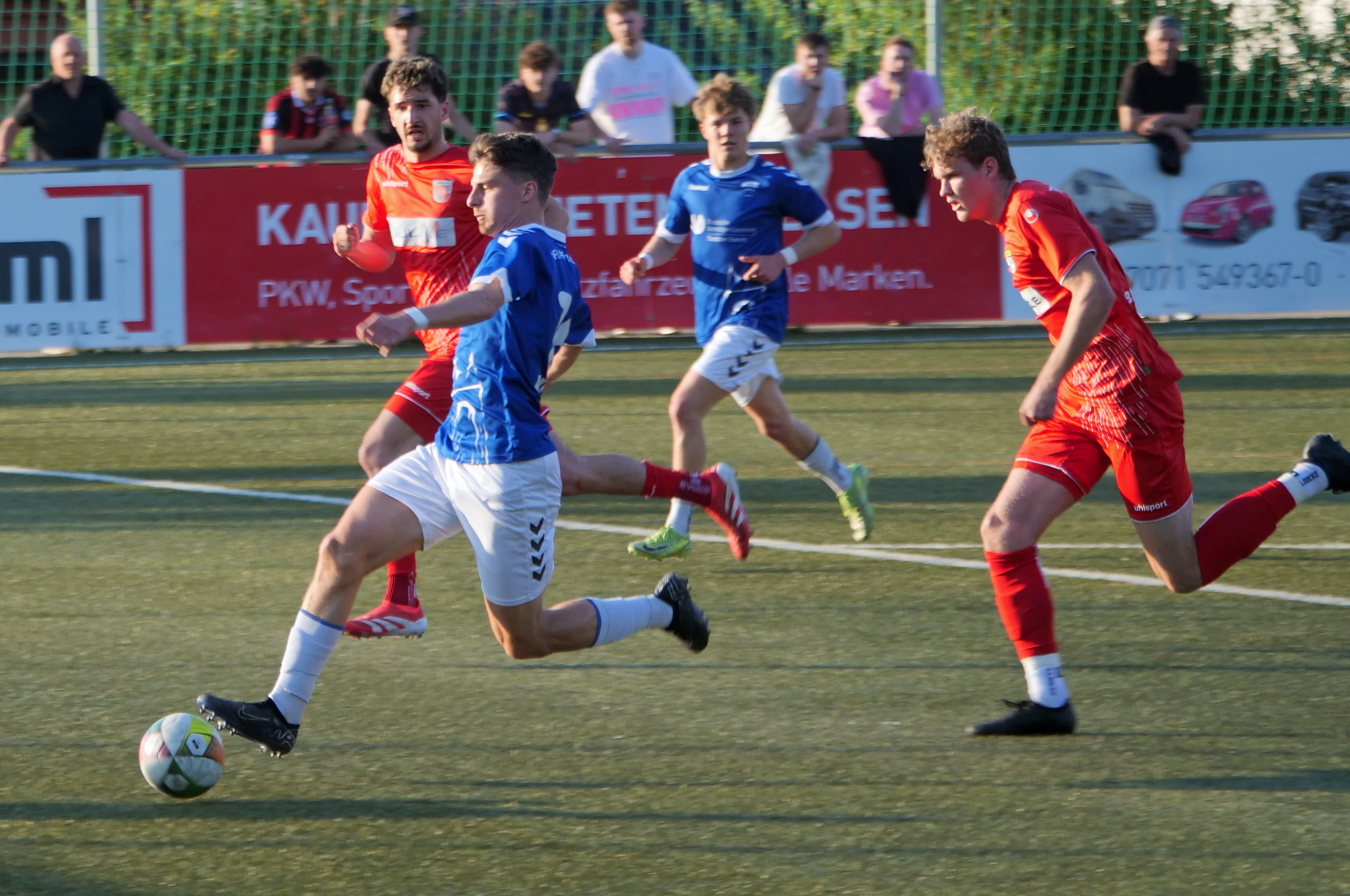 Dabei starteten die Hausherren stark in die Partie. Der VfL dominierte die erste Halbzeit und erspielte sich mehrere hochkarätige Chancen. Doch wie so oft in dieser Saison haperte es an der Chancenverwertung. Besonders Stürmer Robin Hiller hatte einen gebrauchten Tag erwischt: Gleich dreimal scheiterte er am Balinger Torwart Duha Dogan. „Mindestens eine davon muss sitzen“, waren sich die Zuschauer in der Halbzeitpause einig. Fast mit dem Pausenpfiff kam es dann wie so oft im Abstiegskampf: Die Gäste nutzten ihre erste nennenswerte Offensivaktion eiskalt. Nach einem sehenswerten Spielaufbau, bei dem Pfullingen kaum Gegenwehr zeigte, schloss Mirhan Inan platziert zum 0:1 ab (45.+1). Ein Wirkungstreffer, von dem sich der VfL zunächst nicht erholen sollte.