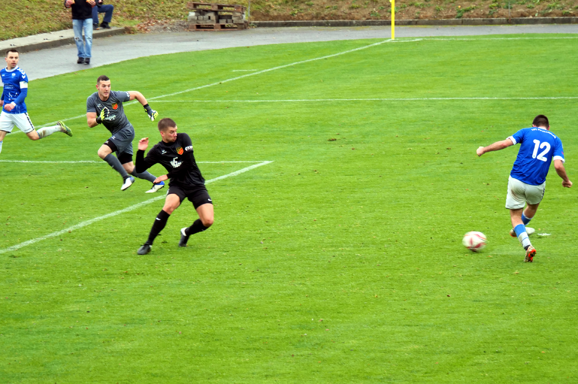 Das sollte sich schnell rächen. Nur vier Minuten nach Wiederanpfiff drosch Fabio Pfeilhofer den Ball zum Ausgleich unter VfL-Schlussmann Martin Welsch, der ohne Chance war, hindurch zum 1:1 ins Tor. Die Hausherren wären nun deutlich präsenter, liefen Pfullingens Verteidigung hoch an und brachten sie dadurch ins Bedrängnis. Die Führung der Gastgeber entsprang allerdings einem Standard. Torjäger Janik Michel lief sich nach einem Freistoß perfekt frei und hämmerte den Ball unter die Latte (58.). Pfullingen sah sich auch weiterhin einem enormen Druck ausgesetzt und konnte sich nicht wie im ersten Durchgang durch präzises Kombinationsspiel daraus befreien. Erneut Michel nutzte nach 70. Minuten einen Querpass und erhöhte auf 3:1, Kevin Müller vollendete ebenfalls eine Vorlage seines Außen mit der Hacke zum 4:1. Den Schlusspunkt setzte wiederum Michel, der nach einem Foul von Welsch an ihm den Elfmeter souverän verwandelte (89.).